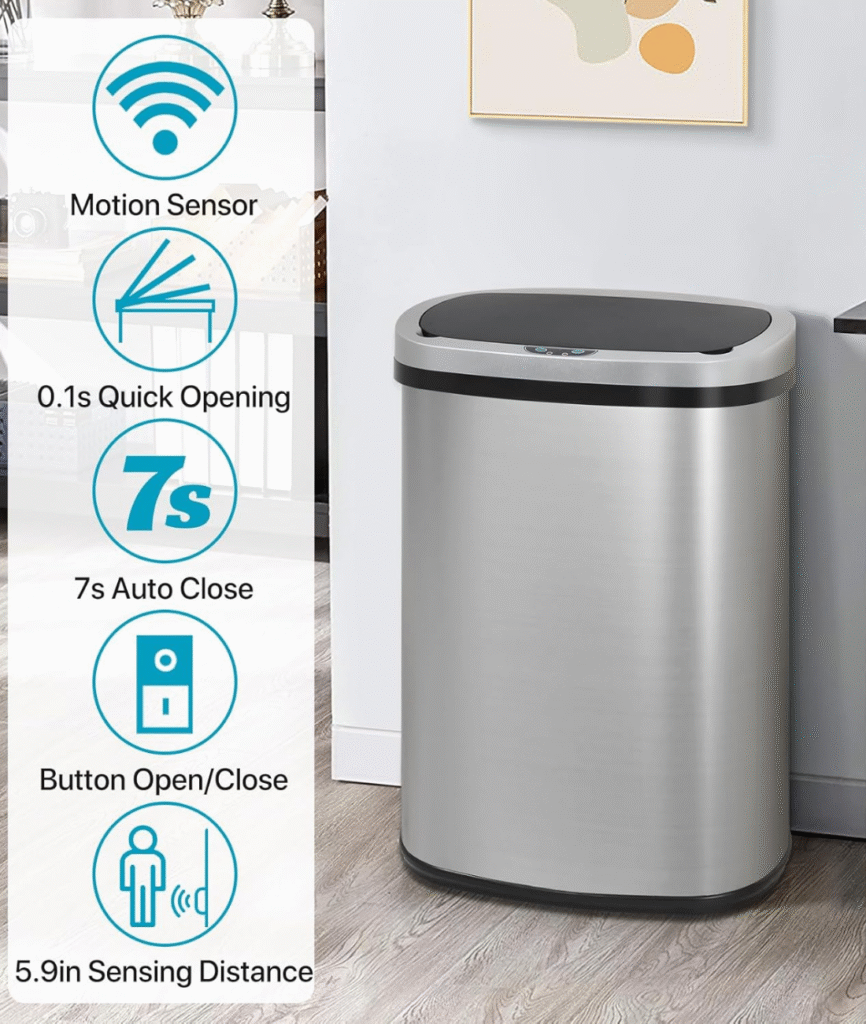 Our Motion Bin uses advanced infrared motion sensors to detect movement and opens automatically. Simply wave your hand or move near the lid, and it opens — no touching required.