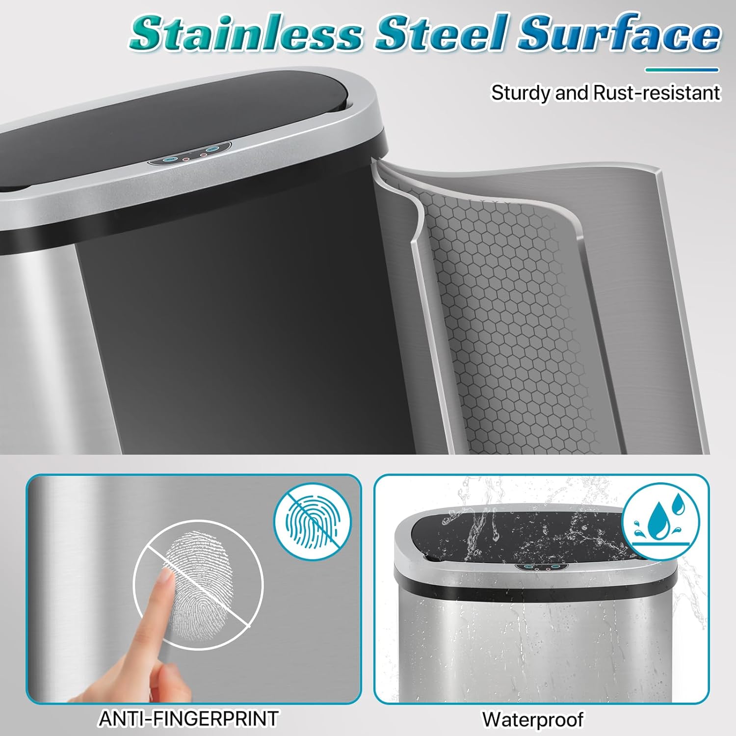 The bin’s body is made of stainless steel wire drawing material, which makes the bin have anti-fingerprint function, smudge and oil-resistant and very easy to clean.